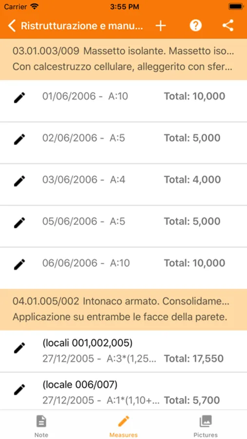AppLibrettoMisure allows you to capture photos on site and to record measurements possibly by associating them with a price list voice.