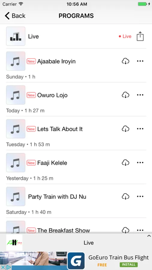 • Recorded shows (podcasts) – that you can either listen online or offline (after downloading them) without any data usage.