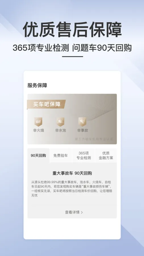 365 项严苛检测标准,问题车 90 天回购,杜绝大事故、火烧车、水泡车,海量靠谱二手车都在这!