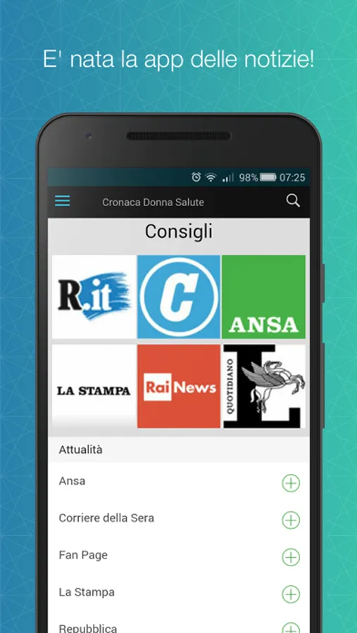 Ovviamente l’App si arricchirá sempre di nuovi siti e fonti che potrete selezionare per rendere sempre piú fornita…la vostra edicola personale!