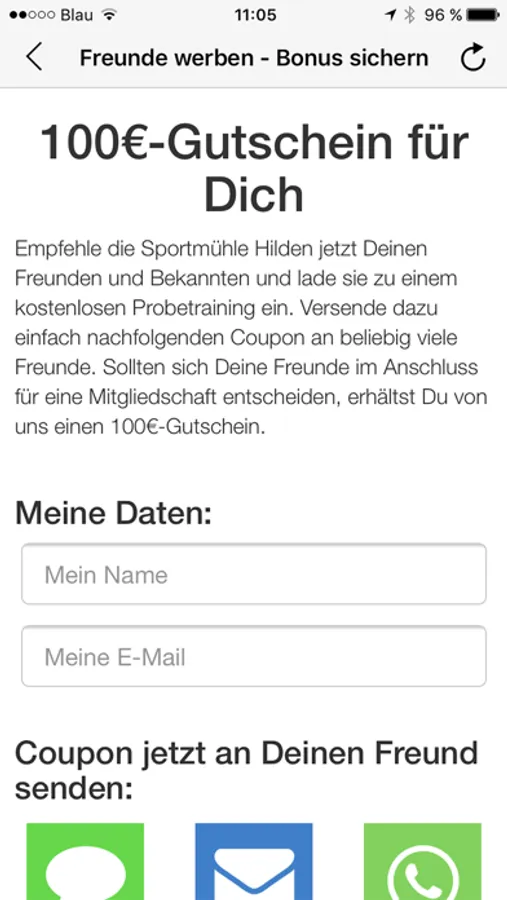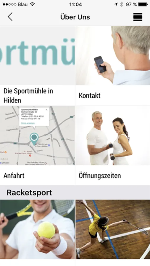 Informationen wie Club-Öffnungszeiten, Kontakt, Trainingstipps sind immer dabei und können sofort per Email an Freunde verschickt werden.