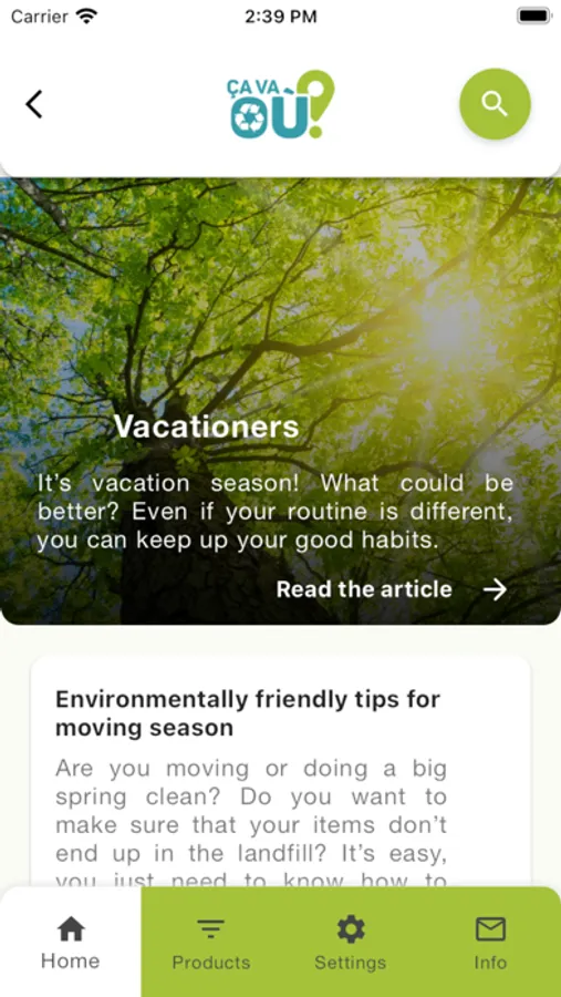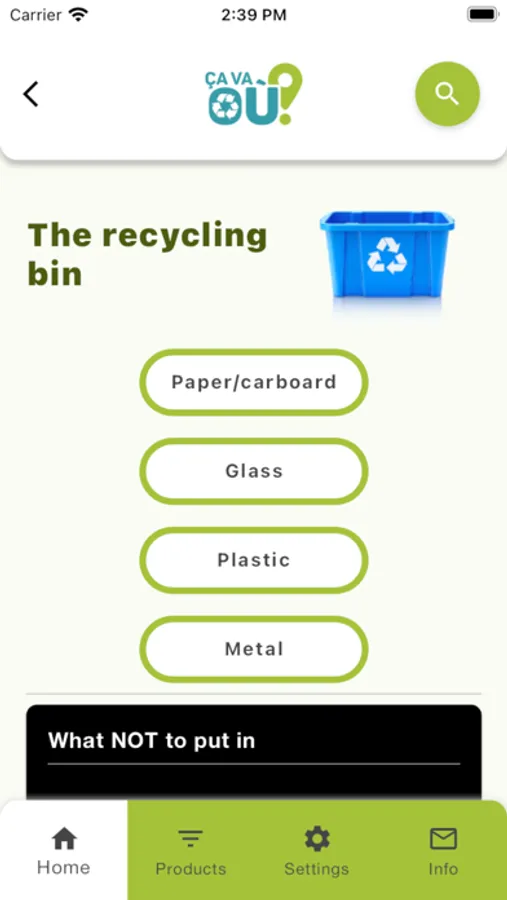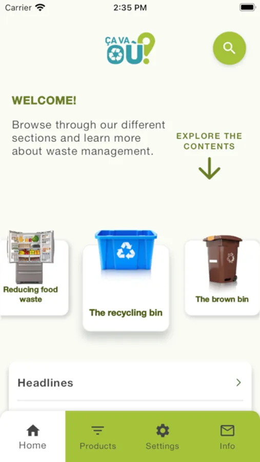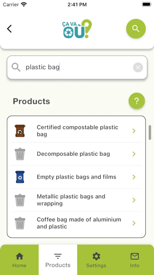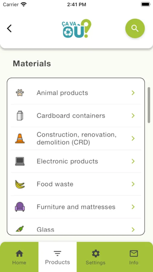 Ça va où? quickly answers your questions and helps you sort your products and materials, whether they belong in an ecocentre, a drop-off site, the recycling bin, the organic waste bin, a special collection or even the trash bin.