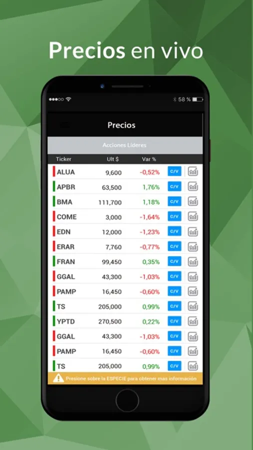 Precios en tiempo real y acceso a la información detallada de cada especie.