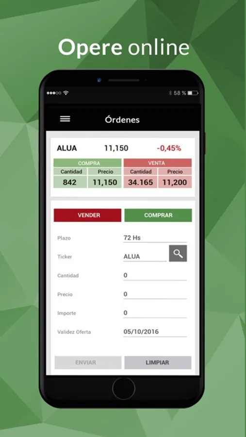 Haciendo clic en cada especie, accedemos a información de la misma. Desde esta pantalla también se puede ingresar una orden, presionando el botón de C/V