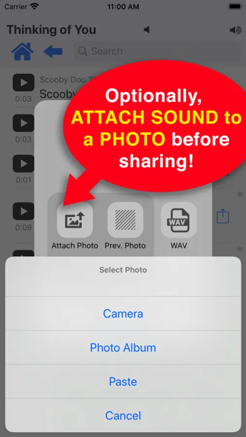 You can also attach any of the sounds to your own photos! For example, instead of just sharing a photo of your kids soccer team, attach a sound to it, such as “We are the champions!”