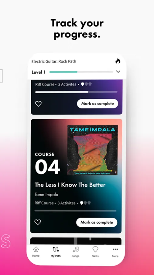 • Customize your learning experience. Choose your instrument and learn guitar (acoustic or electric), bass guitar, or ukulele. Then, select your favorite genre — from rock, pop, funk, folk, country, or blues.