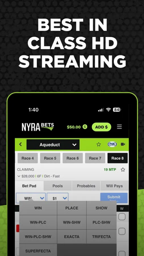 • Quick & Secure Betting • LIVE HD Race Streams, Replays & Live Shows • Handicapping Products • Follow your Favorite Tracks & Races • On Track Perks and Rewards VIP Program •