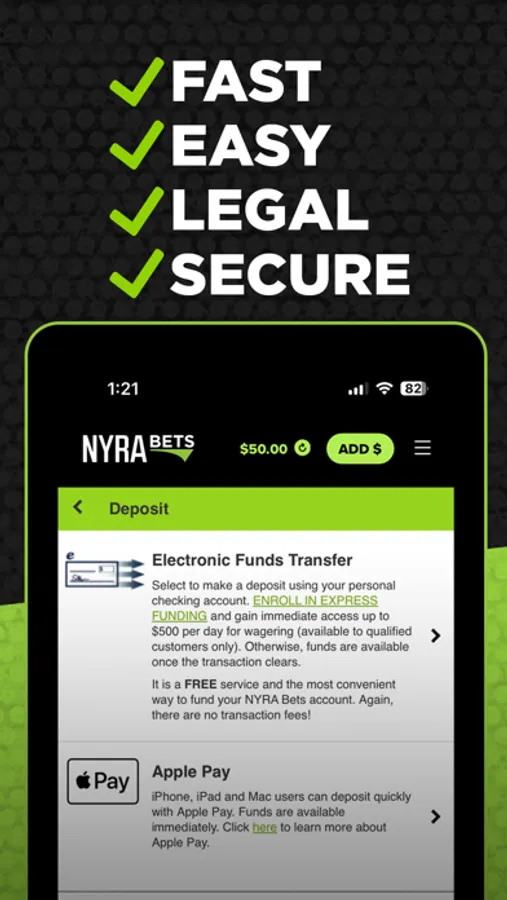 Fast. Easy. Legal. And Secure. Bet horse racing in the best way with free funding, exclusive promotions on NYRABets.com, expert picks, and HD video and replays that make NYRA Bets the choice for all.