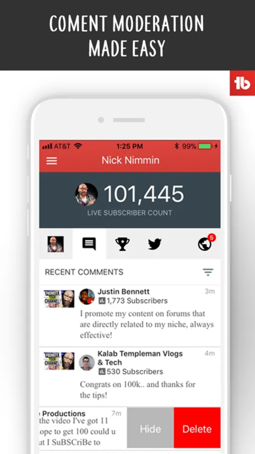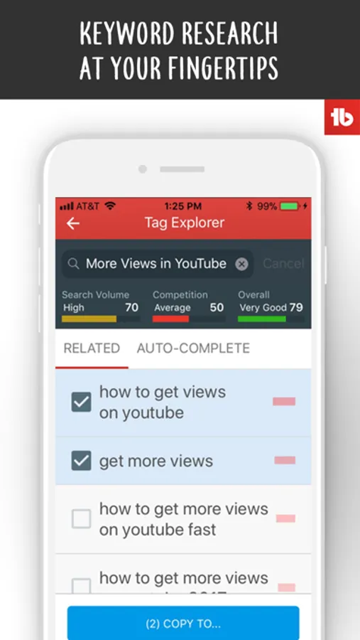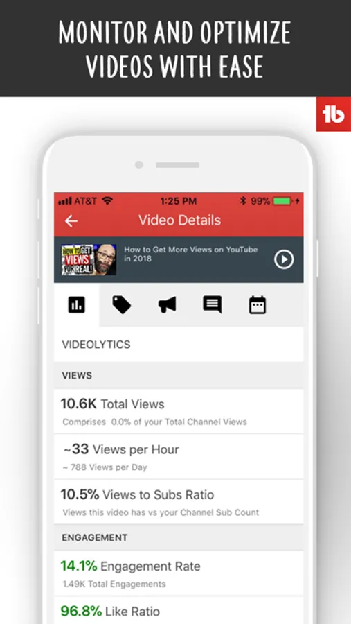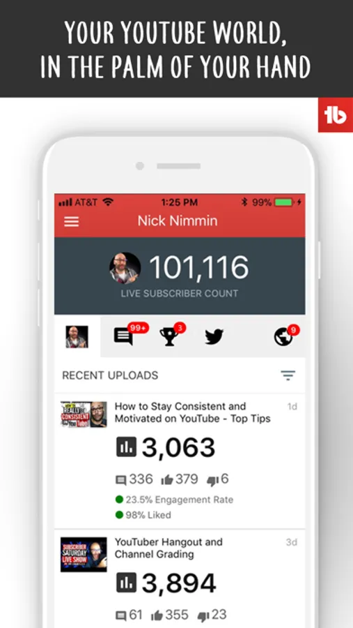 The world's #1 browser extension for YouTube Creators is now available on-the-go with TubeBuddy Mobile. Get more views and subscribers by optimizing your videos for organic growth and access all-things-your-channel quickly and easily.