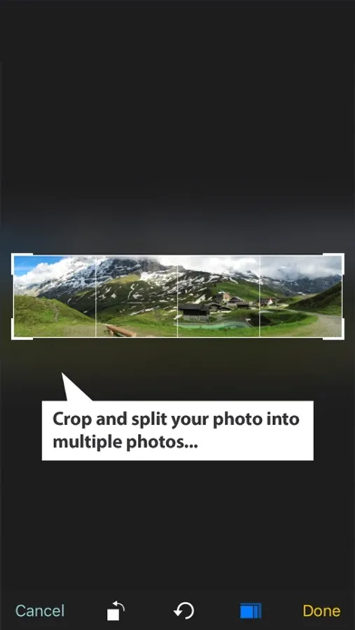 By using this app you will be able to crop your landscape panorama photos (or any other images) into perfectly squared sized pieces to mimic the details of the beauty of your panorama photos.