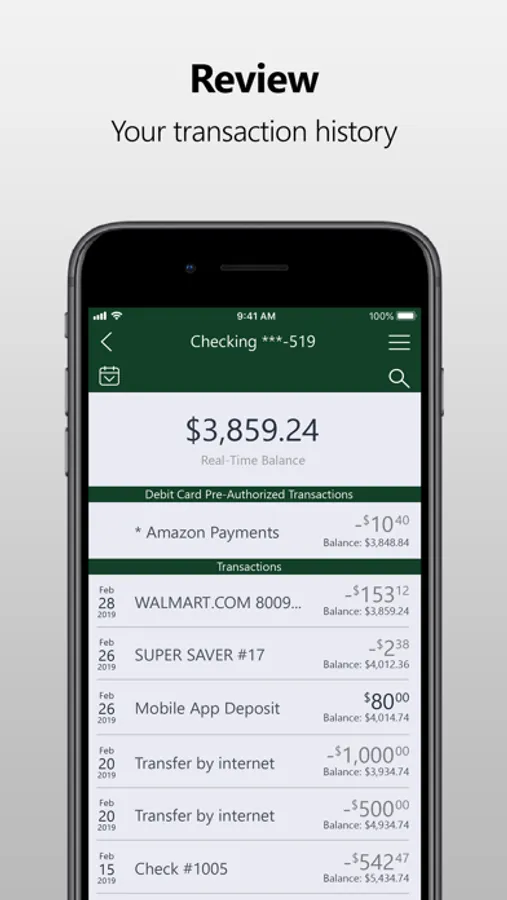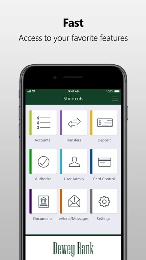 Dewey Bank allows you to view your bank accounts, schedule transfers between them, and even deposit checks from anywhere!