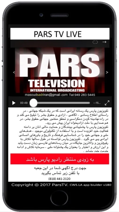 Pars TV is a Persian News and Talk show Live TV located in Los Angeles, California since 1987.