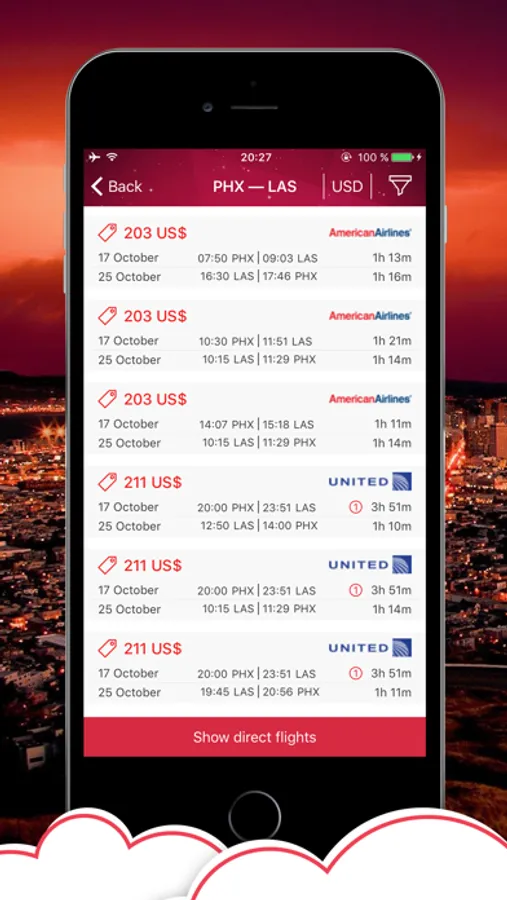 It’s very simple to use Cheap Travel: just install the app, select the flight direction and flight date and sort the results according to the filters.