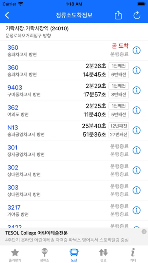 - 정류장 검색 및 버스 도착 시간과 현재 위치 제공