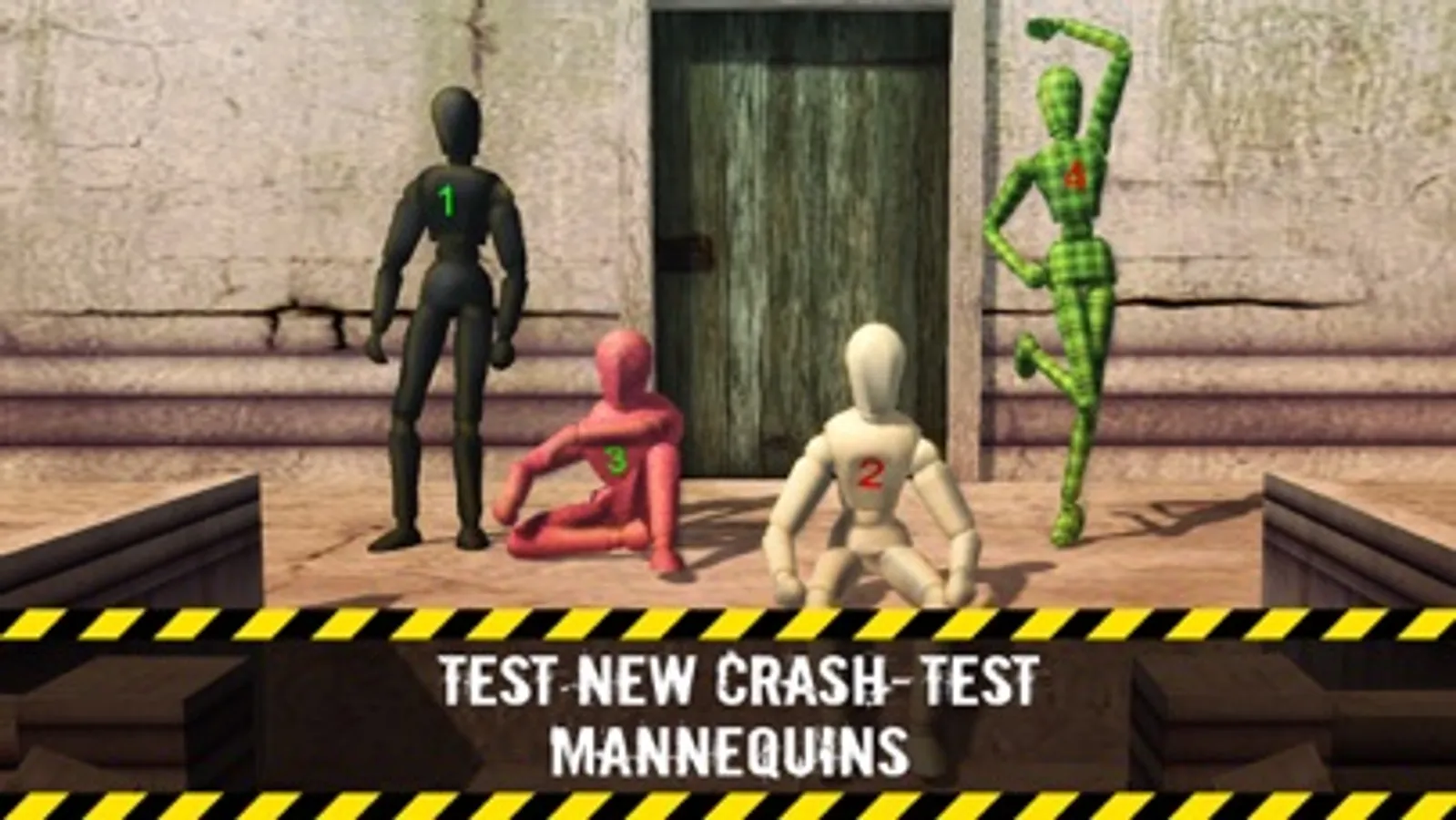 Now it’s time to start a crash test experiment! Work for the security company making crash test dummies and mannequins; test all sorts of stairs and stairways trying to prove how secure it is! Wreck, smash, run into the wall, destroy and dismount all sorts of dummies using skateboard, car, bike or everything else! Perform different tricks and stunts, crash into the walls, destroy your doll with each available vehicle and have fun demolishing everything on your way!