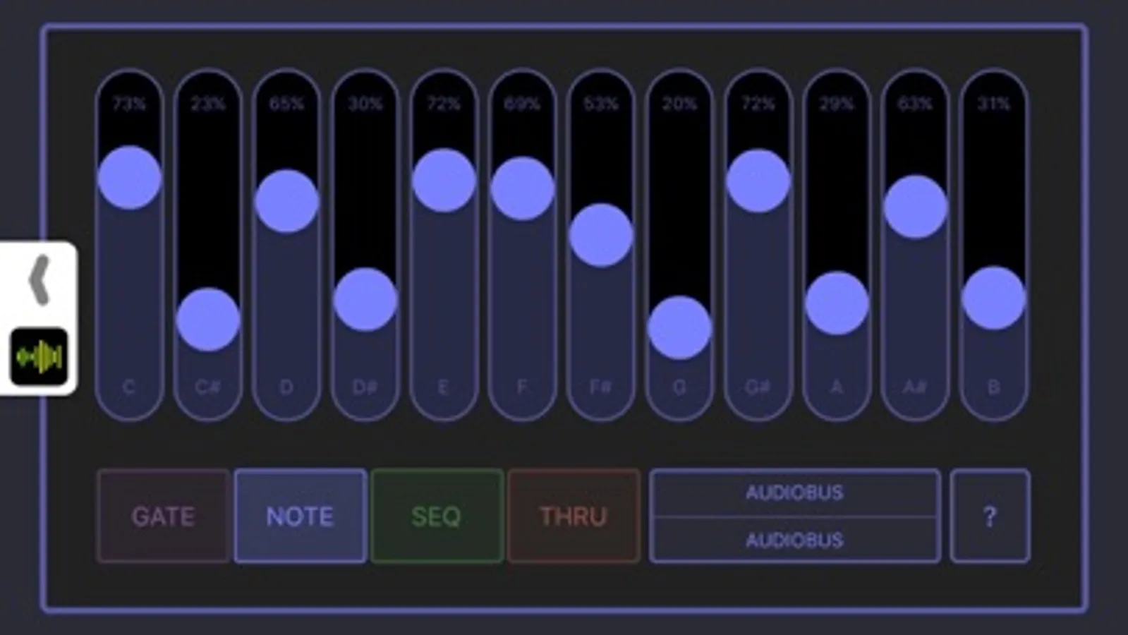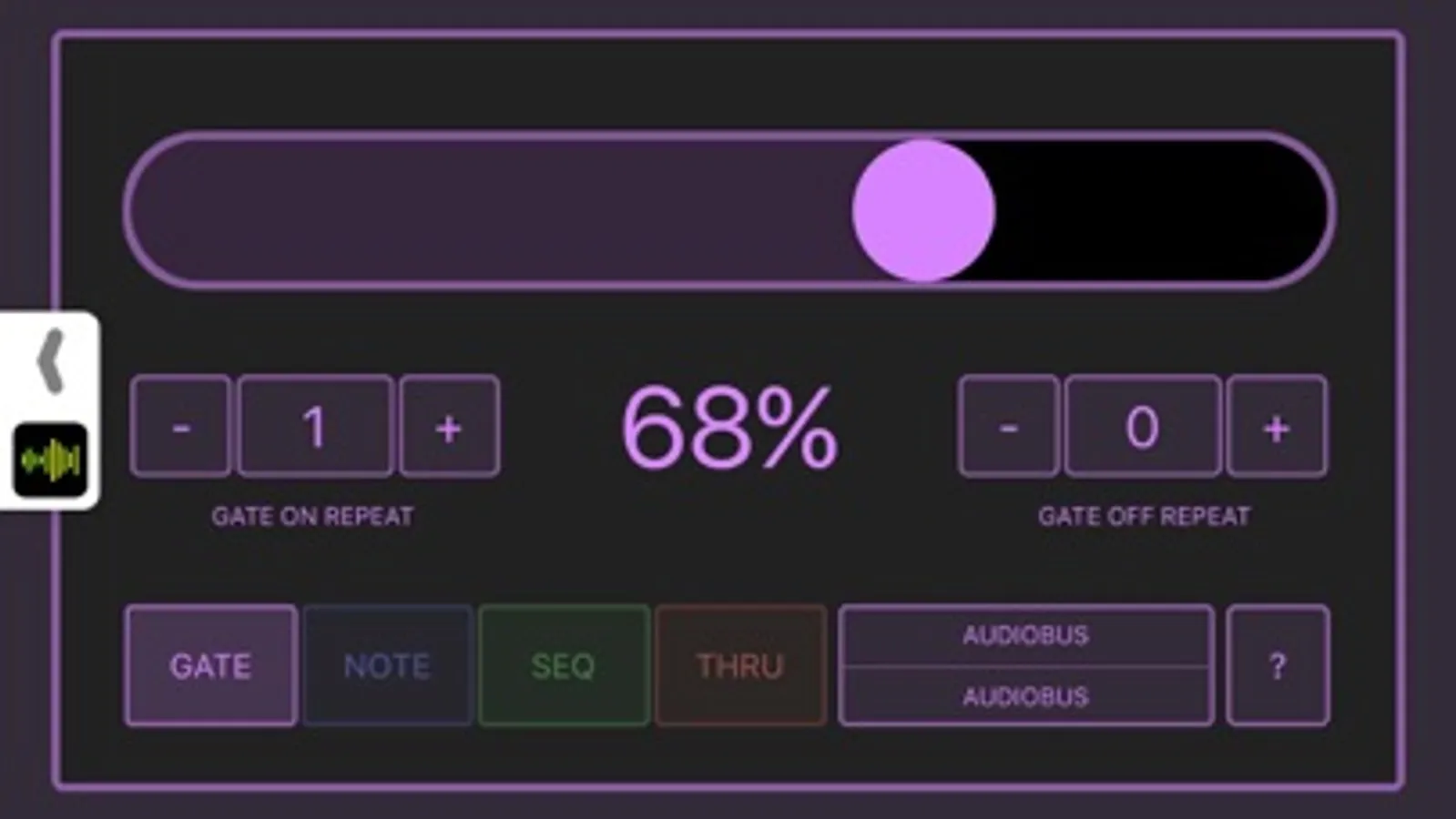 midiGATEs midi probability is an Audio Unit v3 MIDI Effect and CoreMIDI capable app. midiGATEs listens to MIDI input and based on random chance mutes some of the incoming notes to make a busy, repetitive stream of notes a little more interesting and sparser. It has four modes: