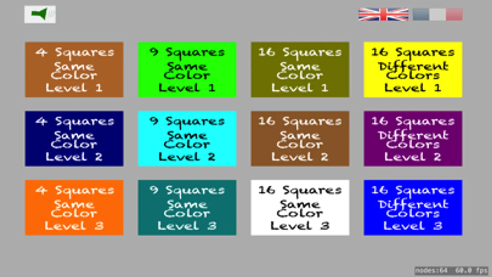 The third level consists of choosing a color and in case of error or when touching an already frozen box, the last frozen box is reanimated, requiring it to recognize the correct color when it reappears.