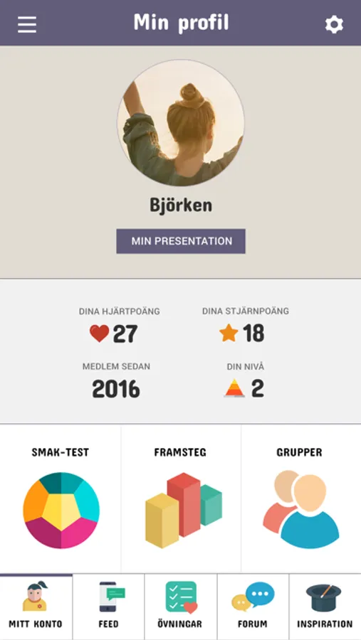 Användaren får tydlig feedback på sina aktiviteter och lockas att fortsätta använda appen. I takt med att användaren bemästrar MindTrip, bemästrar hen även sin egen mentala hälsa.
