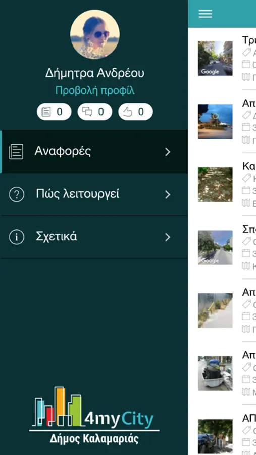 Με την εφαρμογή ‘4myCity’ μπορείτε να αναφέρετε στον Δήμο Καλαμαριάς με το κινητό, το tablet ή τον υπολογιστή σας άμεσα κάθε πρόβλημα της περιοχής και να συμβάλετε στην αναβάθμιση της ποιότητας της ζωή σας και των συμπολιτών σας.