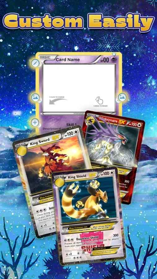 This is where you can make your own custom cards quickly and easily! Pokemon Card Maker app supports multiple stages: EX, GX, V, Vmax, VGold (from Basic, Stage 1, or Stage 2, Mega, Legendary come with your unique special rules).