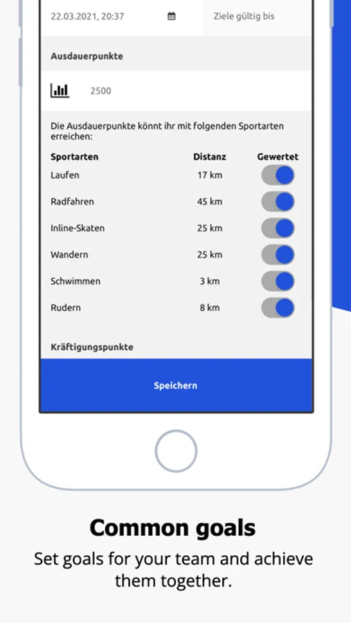 Just create your team in the app and distribute the invitation link (or code) to your players. Now you can set goals for your team that have to be reached.