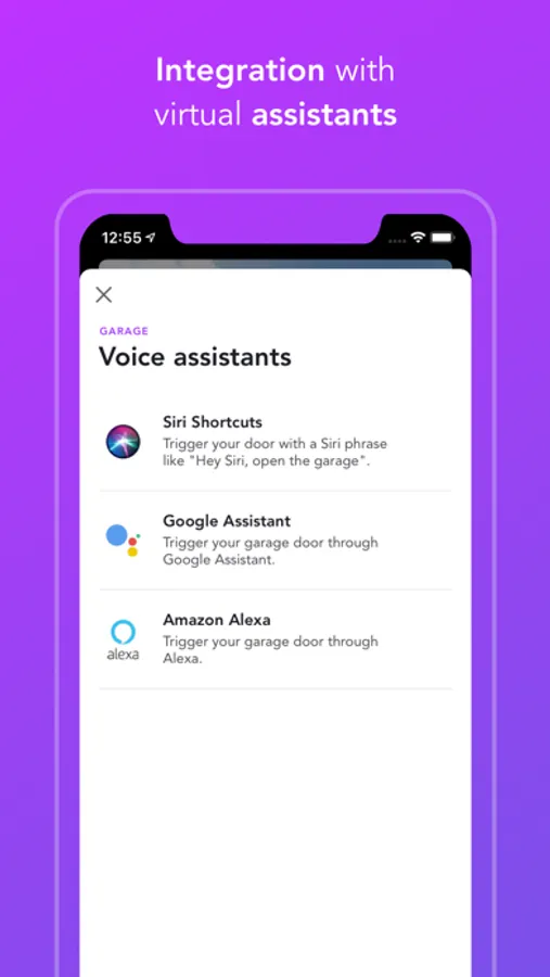- Share timely or permanent access to your garage from anywhere and anytime.