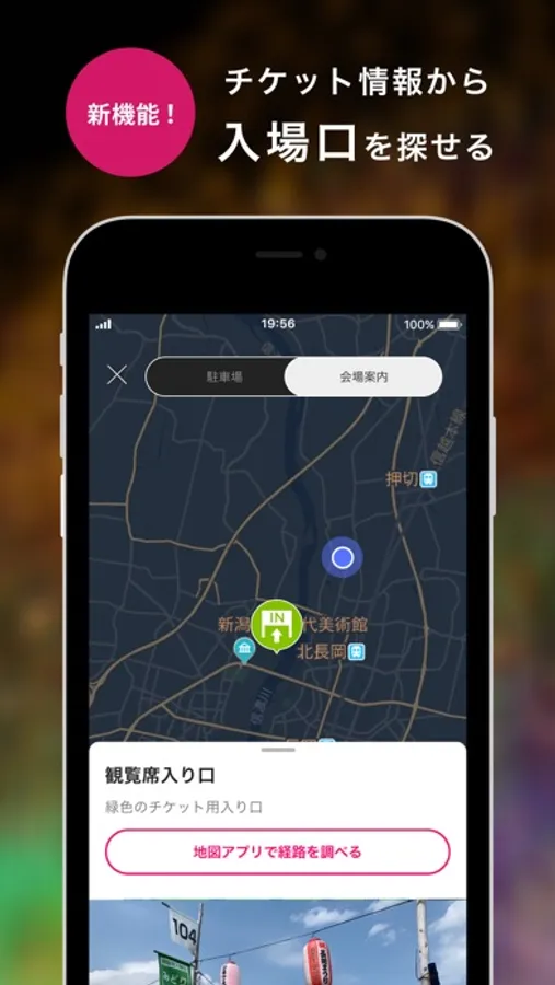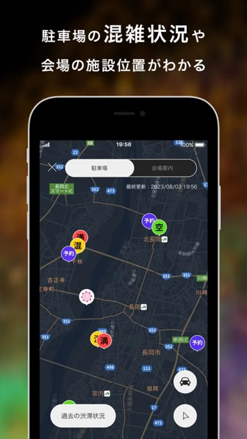 +マップ機能(駐車場情報、過去の渋滞状況、会場案内、入場口検索機能)