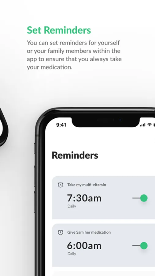 You can set reminders for yourself or your family members within the app to ensure that you (and your family members) never miss a dose of your medication.