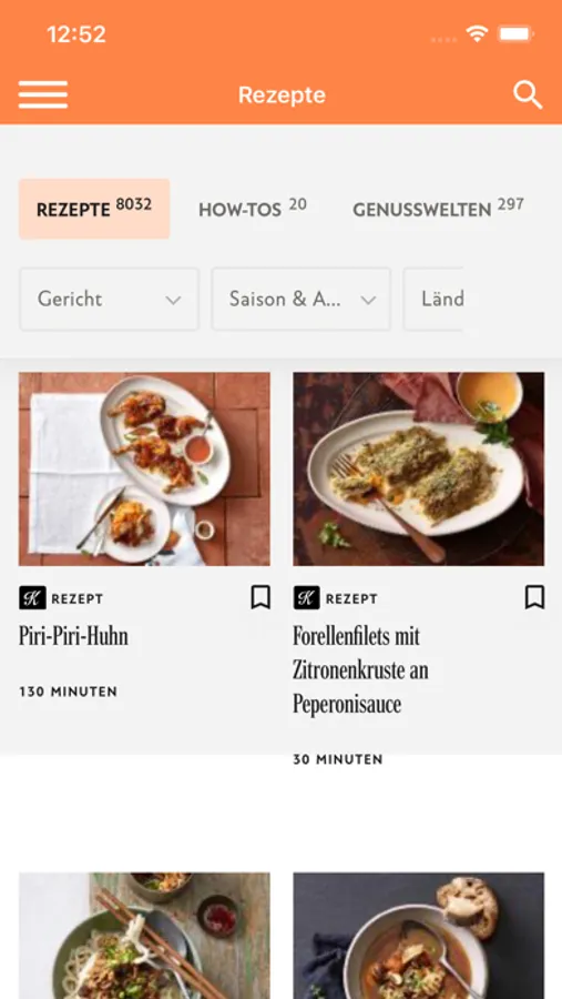 Saisonal abgestimmte Auswahl aus über 6000 Rezepten von Annemarie Wildeisens KOCHEN. Jedes Menu wurde durch die KOCHEN-Redaktion persönlich entwickelt, geprüft und abgesegnet. Die Rezepte zeichnen sich aus durch eine hohe Gelinggarantie und saisonale Zutaten die sich in jedem gut sortierten Lebensmittelgeschäft finden.