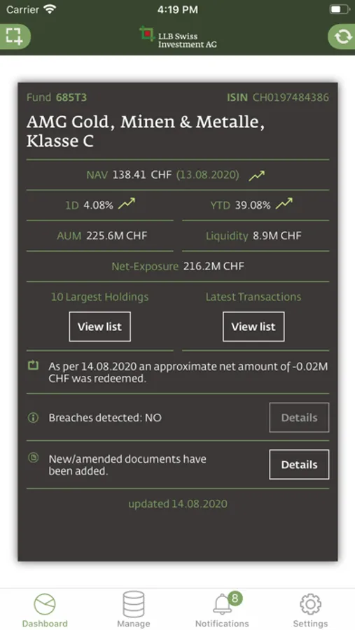 Its a fond management app that tracks and manages your selected fund portfolio.