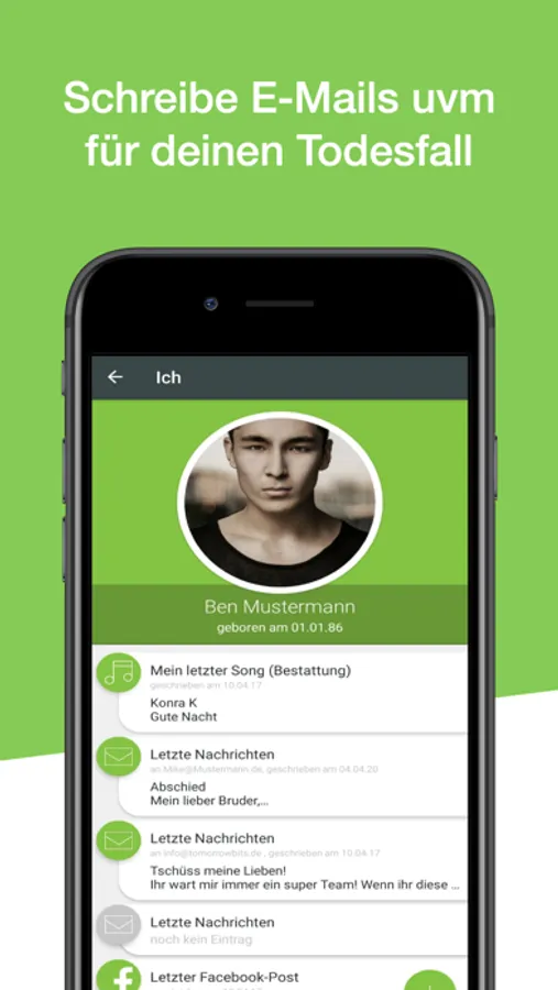 • Deinen letzten Song an Angehörige postmortal übermitteln lassen oder zuvor auf Facebook teilen