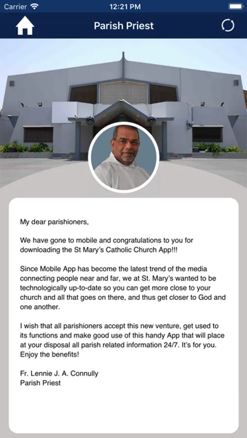 Fr. Lennie J. A. Connully, Parish Priest of St. Mary’s Catholic Church envisioned the ministry through integrating a latest technologies by enabling the mobility info-case of the church. The church members benefit from the following features of this application with dynamic content managed by the parish office and receive the regular updates from the St. Mary’s Catholic Church - Dubai through this application