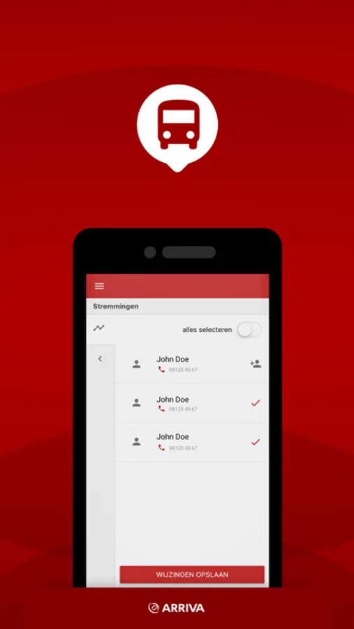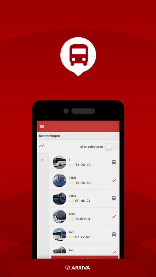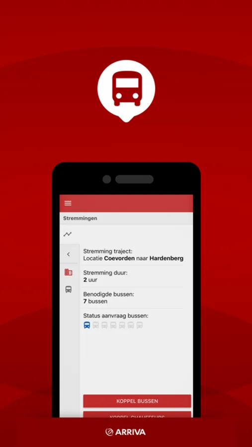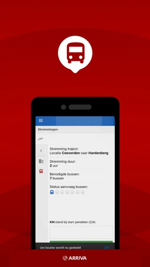 Accepteer of weiger, kies een bus om in te rijden, en hou de gereden kilometers bij.