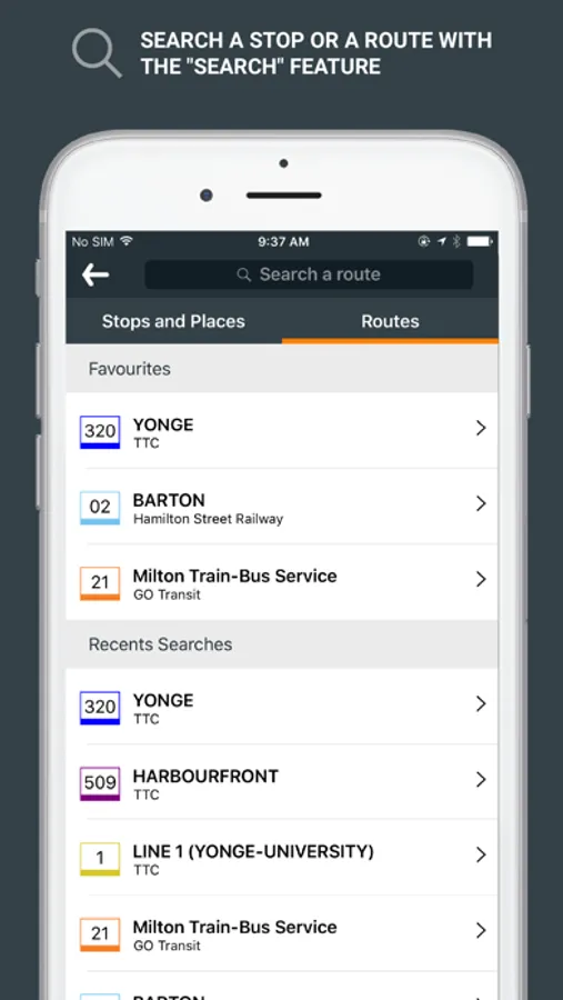 • Search a stop or a route with the "Search" feature