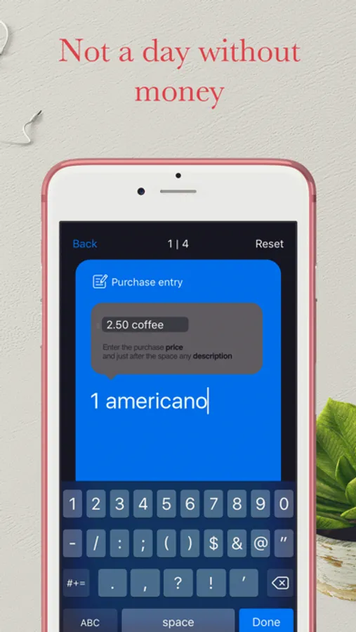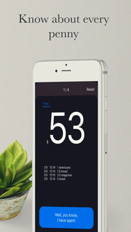 You will be asked only 2 questions: about amount of days and money. This small but smart app will determine how much money you can spend in a single day and will show the day balance. Just in one tap you are able to enter expenses to update the current day balance.
