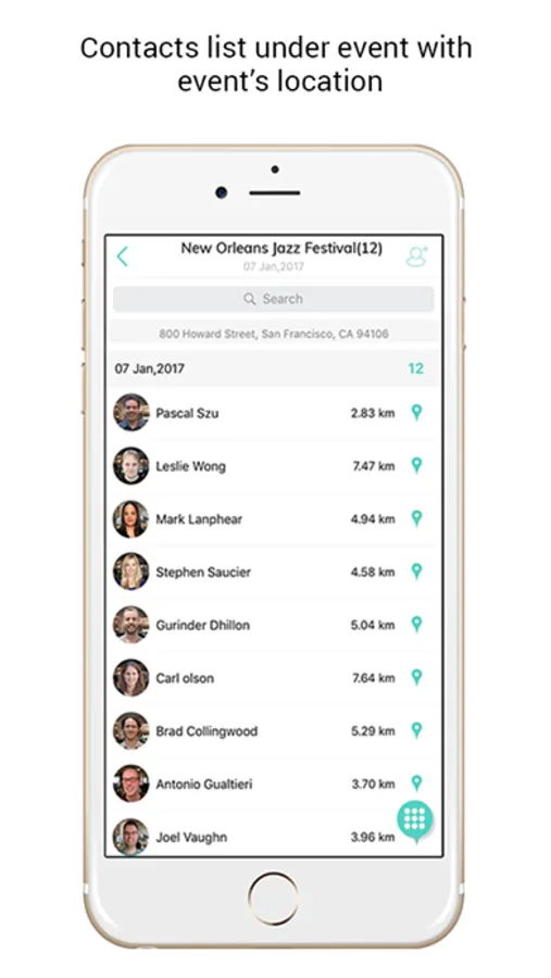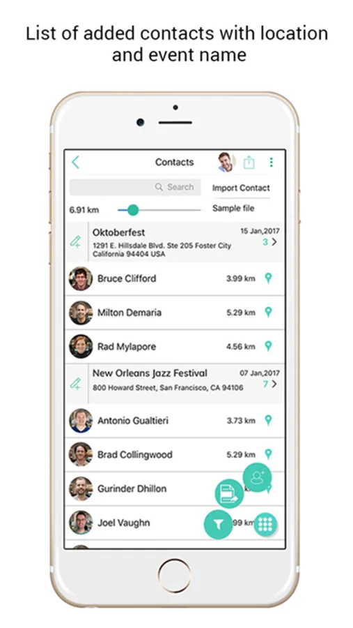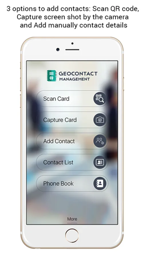 - Location tagged automatically with QR scanning, business card image capture or manual add contact