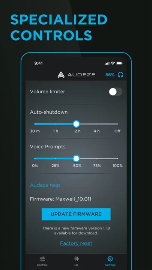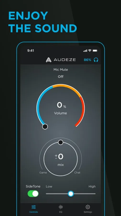 With Maxwell, Audeze HQ enables you to adjust the 10-band EQ, and save up to four presets, or choose from the six built-in presets. You can also adjust sidetone level, game/chat mix, and much more. Tailor the sound and functions of Maxwell to suit your taste and needs.