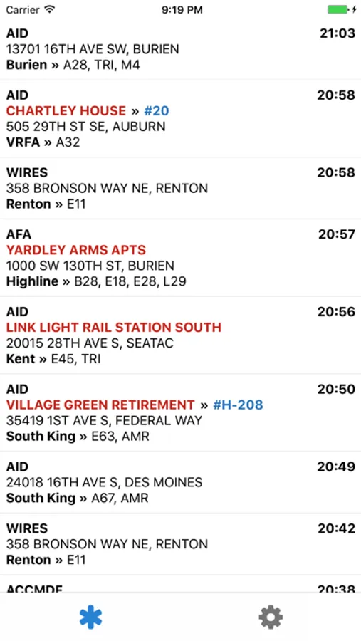 Real-time tracking of all fire, aid, and rescue calls that go out in South King County, WA. You can also click on any call to pull up routing information in either Google or Apple Maps. Currently intercepts all emergency pages from Valley Communications Center (Valley Com) but has the potential to support both NORCOM and SNOPAC in future releases.
