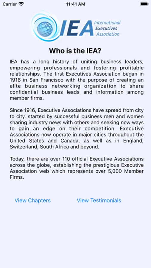 International Executive Associations(IEA) has a long history of uniting business leaders, empowering professionals and fostering profitable relationships. The first Executives Association began in 1916 in San Francisco with the purpose of creating an elite business networking organization to share confidential business leads and information among member firm.