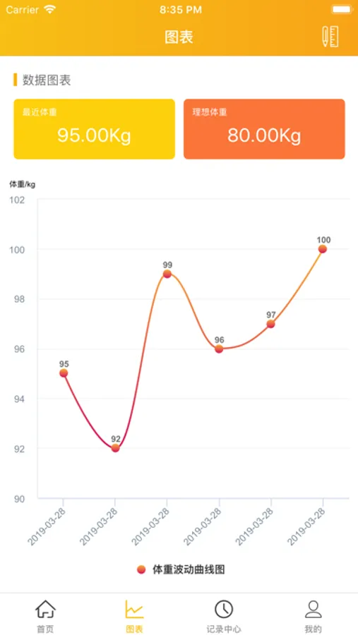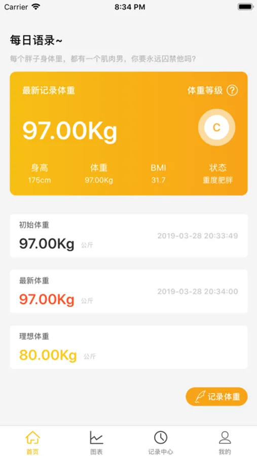 2、体重变化趋势图标一目了然,清晰直观,有效辅佐体重管理