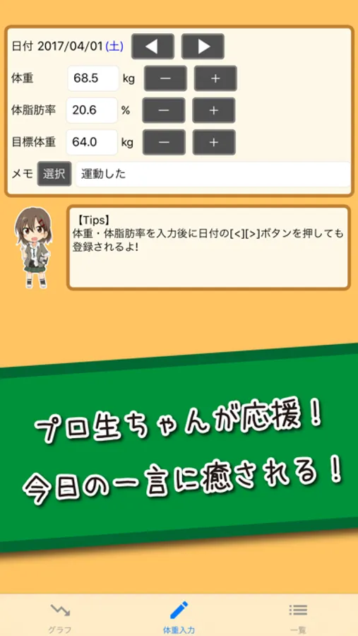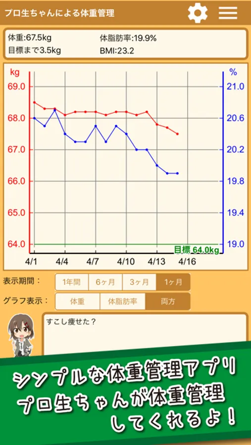毎日体重を入力して、グラフを眺めるだけでダイエットできるんです!