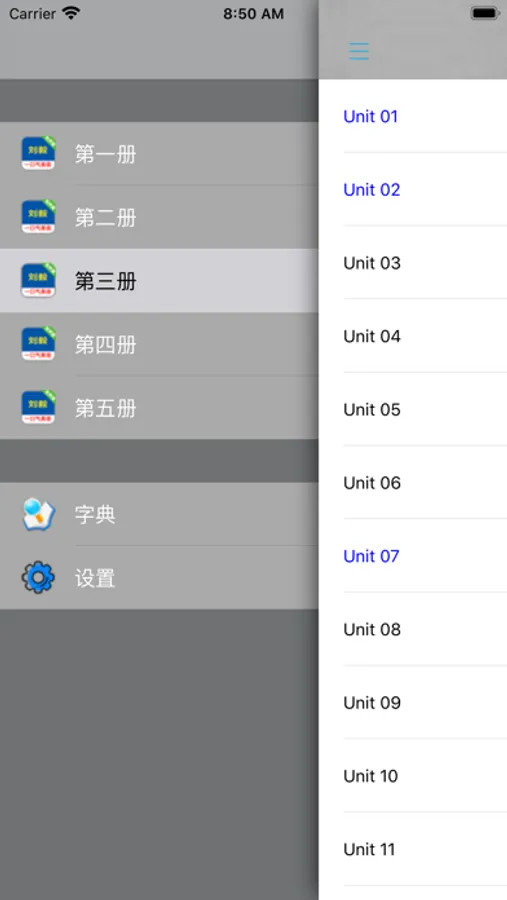 本软件配套刘毅英语系列的 《一口气英语全五册(第1-5册)》最新教材。