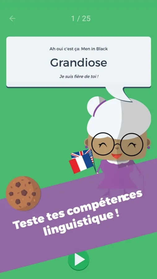 Dans le jeu, Mamie évoque un film et le joueur doit l'aider à retrouver le titre original, exemple: Hommes en noir → réponse: Men in Black.