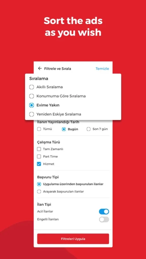 Please note that you won't be able to see public job announcements among the thousands of daily job advertisements; we recommend checking the İşkur job advertisements for public jobs.