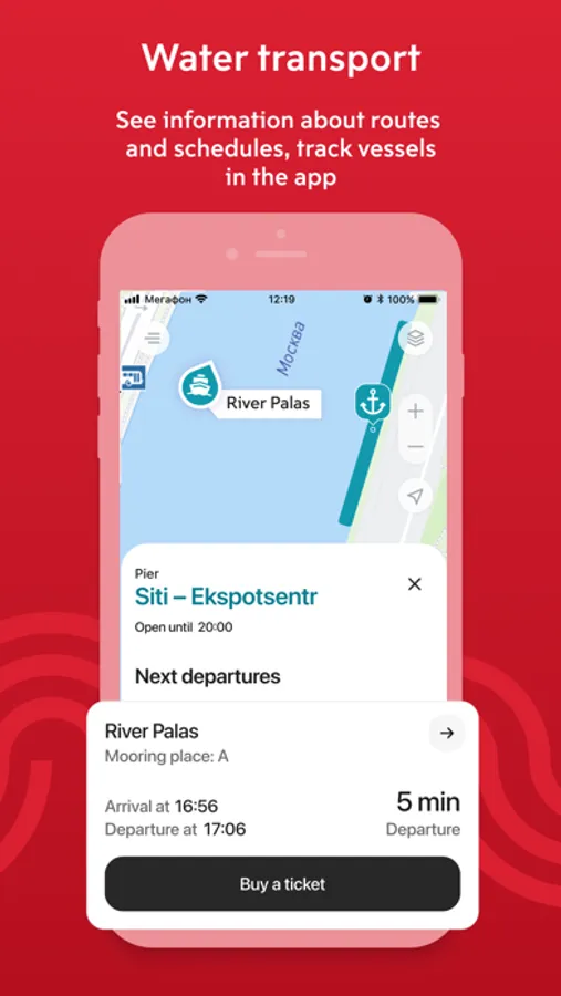 Directly at Moscow Transport, you can order a taxi, find the nearest bike rental station, book a scooter or rental car, buy a ticket for a river trip. Besides, the app allows you to top up your Troika transport card and buy Aeroexpress and City Shuttle tickets.