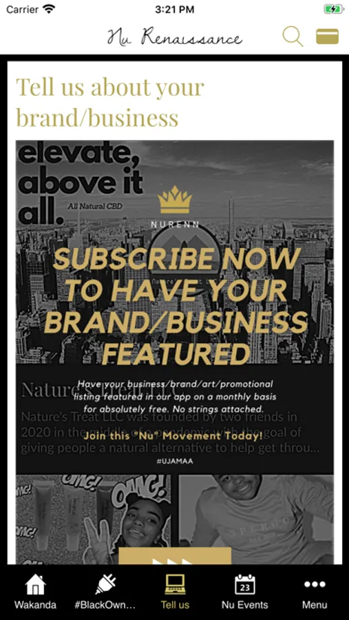 The NuRenN app serves as a portal that connects you to content creators, urban professionals, artists, local businesses and entrepreneurs. With a primary focus on Black & Brown-owned content/businesses, NuRenN is designed to be a collaborative social networking space that gives us an opportunity to present and support these "nu" brands, businesses, and events for those who seek to empower and uplift our largely underserved urban areas.