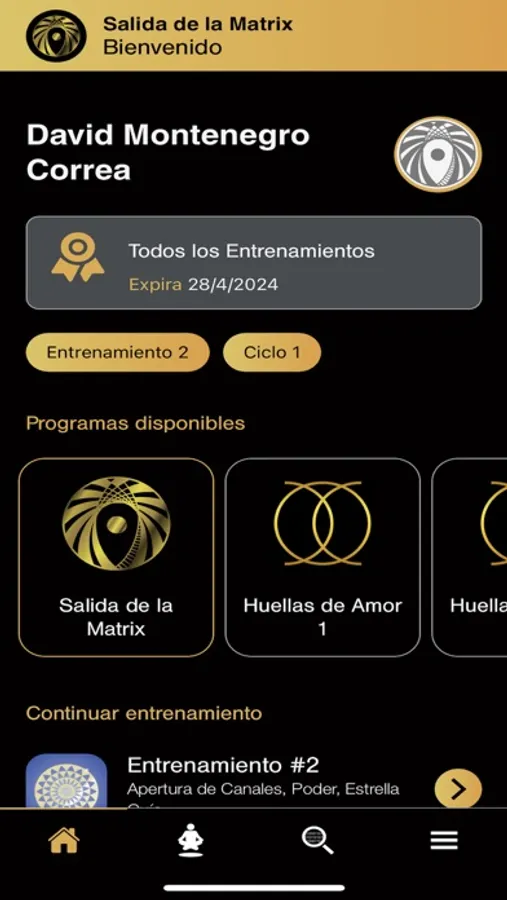 En esta sección podrá realizar cada entrenamiento (Lectura, Audio, Visualización y Tarea). Las opciones estarán bloqueadas y serán desbloqueadas de manera consecutiva.