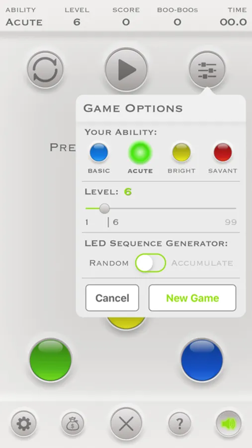 The sequence will get longer and more complex as you progress thru the levels. You can always restart the game on the highest level you acheived. There are 4 difficulty levels, one or more should suit your ability.