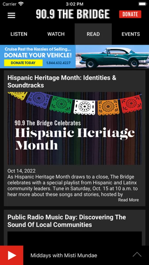 The Bridge’s Public Radio App allows you to listen to The Bridge LIVE and search our past playlists, watch and read our latest music content, view our events calendar, and listen On Demand to your favorite Bridge shows, sessions and interviews!