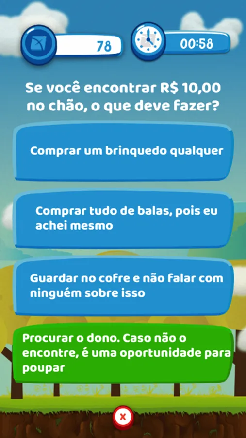 As fases são divididas em: perguntas e respostas, jogo da memória (notas e moedas), jogos de associação (valor das notas e moedas, animais e personagens e dinheiro equivalente) e à medida que você avança para a próxima fase, o desafio se torna ainda mais empolgante.